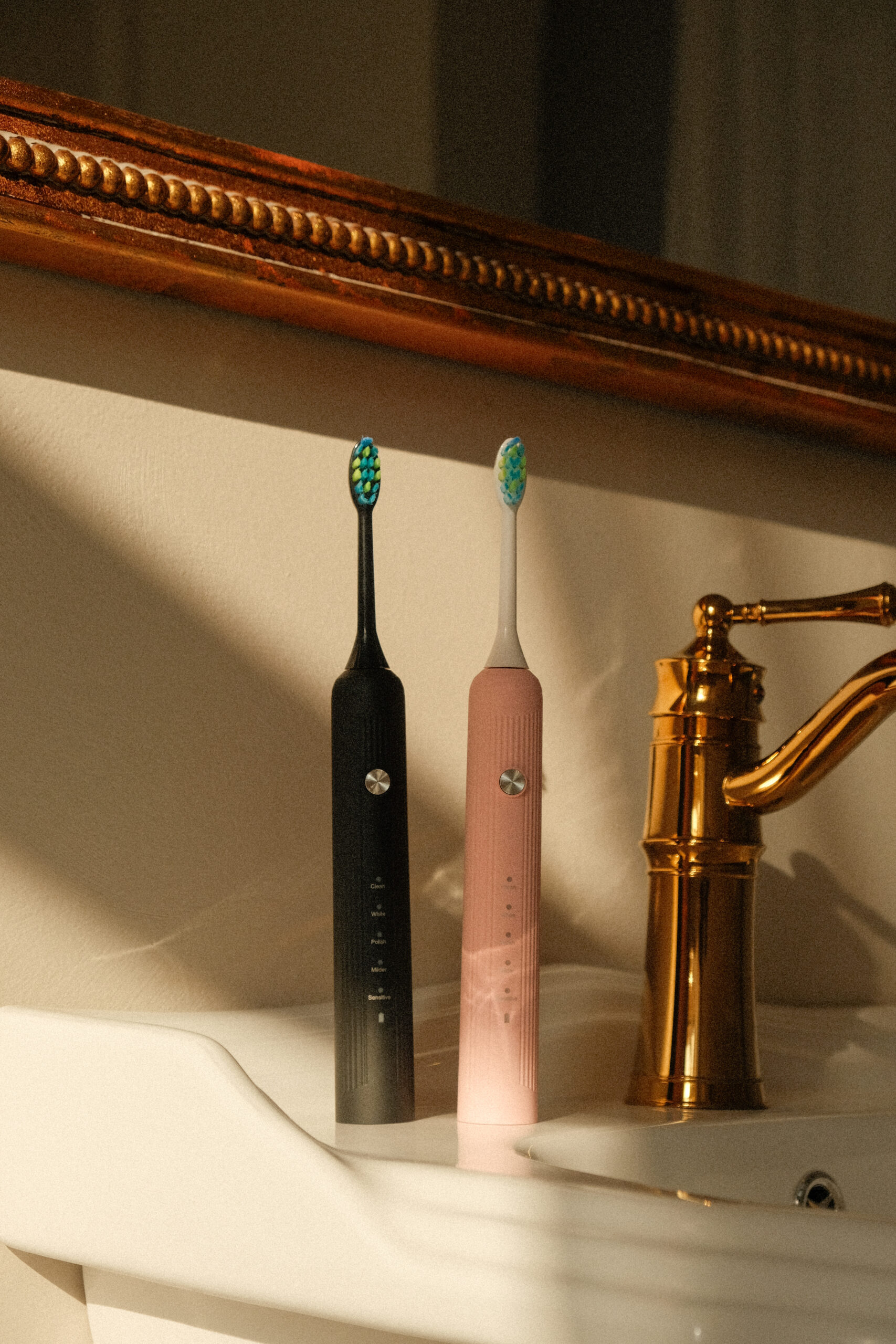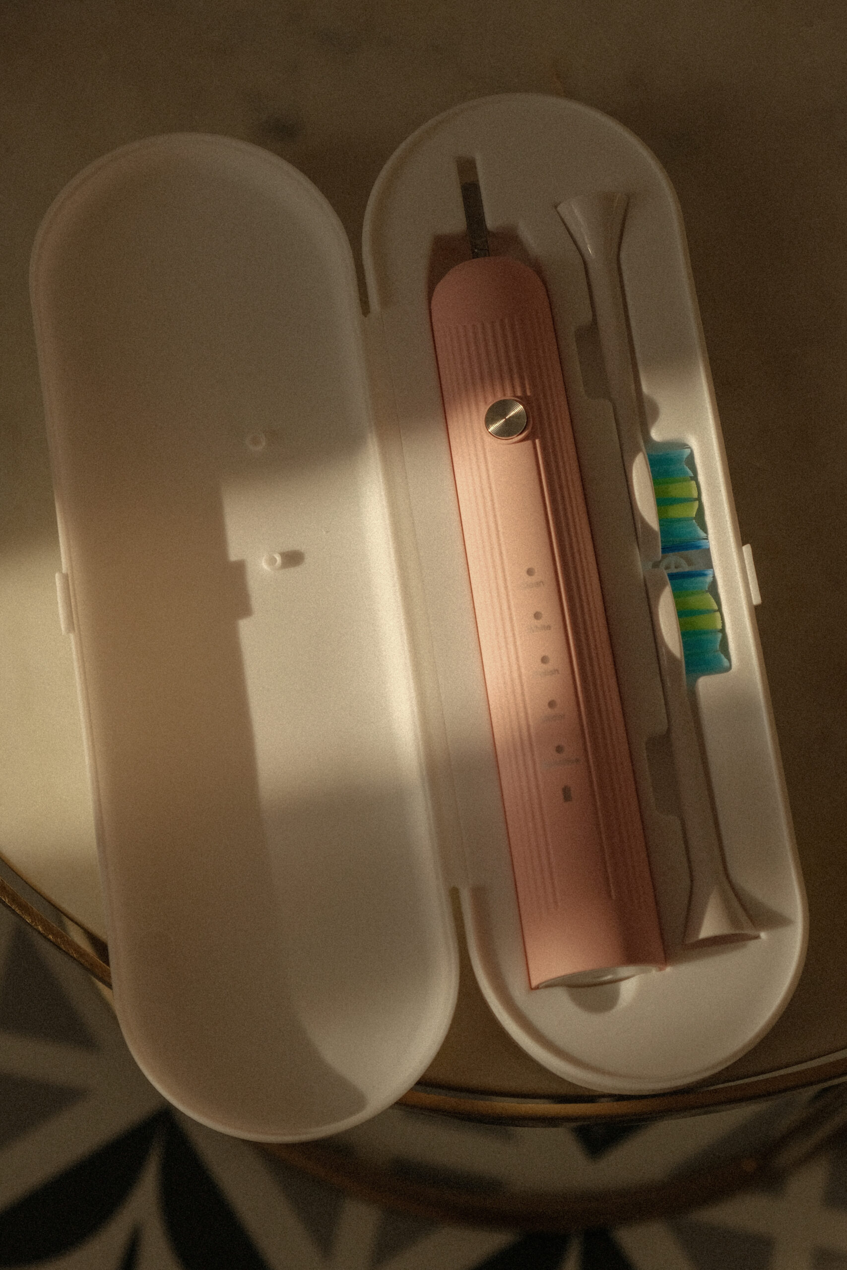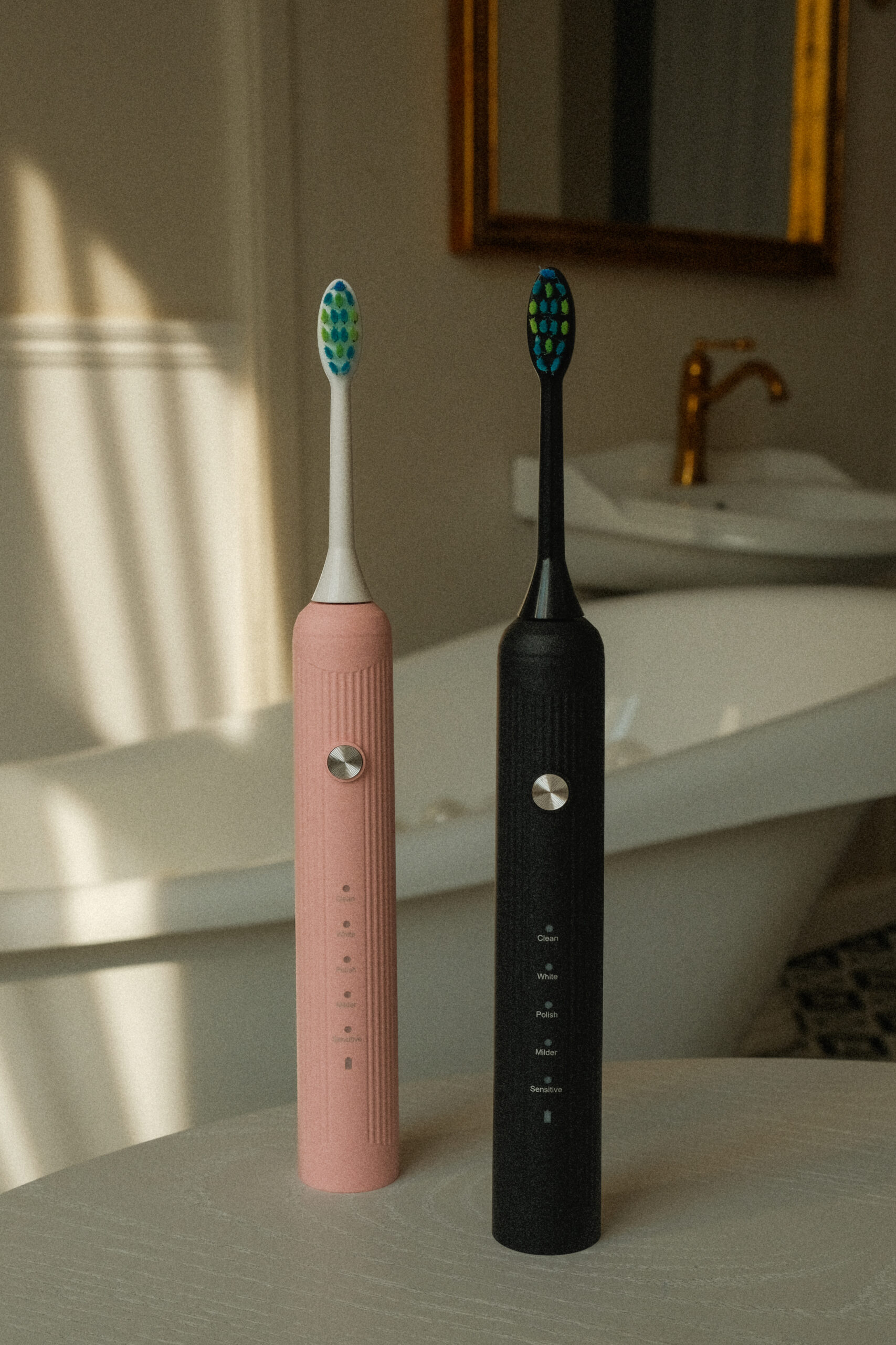 Szczoteczka soniczna, do wyboru w kolorze różowym z etui podróżnym lub czarna.